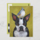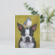 Boston Terrier mit Titmausthut auf Postkarte