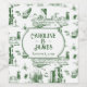 Dieses Boston Toile ist das perfekte Design für Ihre Hochzeit. Aus der Ferne sieht es traditionell aus, aber es gibt Details, auf die sich jede echte lokale Verbindung bezieht, wie Baukrane und verwirrende Verkehrsschilder. Die einfachen Farben Wald grün und Weiß koordinieren sich mit fast jedem Thema. Und der Stil verbindet sich genauso gut mit einem eleganten, schicken Stadtbild oder einer launischen Ästhetik wie mit einem botanischen, Outdoor-Ambiente.