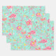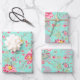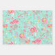 Botanic Japanese Flower Pattern Turquoise Geschenkpapier Set