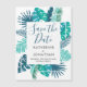 Botanique moderne bleu vert Enregistrer la date carte magnétique pour une plage ou une cérémonie d'été en plein air. Ce bel invitation présente un feuillage de feuilles de palmier sauvage entourant un rectangle blanc. Des magnets de destinations tropicales pour un événement sur l'île hawaïenne.