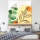 Botanisches Design in Grün, Orange, Beige und Aquarellelementen.