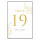 Guide your guests in a stylish way with this botanical faux gold wedding table number card. The design features a clean white background with delicate gold leaf accents, creating an elegant and timeless look.