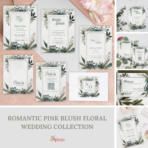 Elegant Botanical Greenery Wedding CollectionDesignt von Mypaperlove Designs