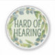 This sticker features the slogan 'Hard of Hearing', surrounded by a green wreath of eucalyptus leaves, on a pale green background. You can edit the text as needed.⭐ For more deafness accessories, visit my store Zazzle.com/Elder_Vitality ⭐ For custom orders, message me on Zazzle