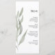 Add a refined botanical touch to your reception tables with this elegant minimalist greenery wedding menu card. Featuring a soft eucalyptus-style leaf illustration and clean modern typography, this design blends natural beauty with timeless sophistication.