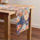 Dieser stilvolle Tischläufer zeichnet sich durch ein wunderschönes botanisches Herbstmuster in erdigen neutralen Farben auf marineblau-blauem Hintergrund aus.