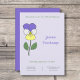 Une invitation simple et élégante à l'anniversaire de violet clair avec une illustration botanique de fleur de sansy sauvage aux couleurs pastel (Viola tricolor) ! Vous pouvez customiser des textes (en violet, vert et gris) et l'utiliser pour une fête de ménage, un mariage, une retraite, une fête de bachelorette, etc. Violet est la fleur de naissance de Février, la fleur de Capricorne et est symbolique significations de l'amour, de l'admiration et du souvenir.