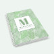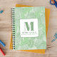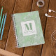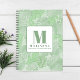 Ein einfaches Design mit einem einfachen, minimalistischen Monogramm-Namen, einem mit Monogramm Anfangsbuchstaben, einem floralen grünen Palmenbaum, einem stilvollen trendigen typografischen Schriftart, einem schlichten, eleganten, minimalistischen Blätter, mit tropischen Wasserfarben-Blättern, ideal für Zuhause-Büroarbeitstitel, personalisierten Namensberuf mit ausgekleidetem, Uni-regiertem oder Graphen-Papier, ideal für Kompositionsklasse-Notizbuch