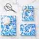 Botanisch lebendiges Blau und Weiß Geschenkpapier Set