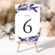 Elegante botanische Tischnummern mit kräftigen blauen und lila botanischen Blätter rund um Ihre Tischnummer. Design wiederholt sich auf der Rückseite. Koordiniert mit unserer reichhaltigen Foliage Violet Eventsammlung.