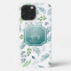 Elegant Watercolor Botanical Blätter Monogram iPhone Case. Die Aquarellfarben sind in Grün- und Blautönen gehalten. Die Blätter sind in Grün und Blau gehalten.