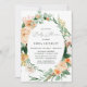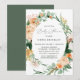 Schöne Babydusche mit einem eleganten, modernen, neutralen, pastellfarbenen botanischen Blumenrahmen in sanften Erdtönen aus Pfirsich, Orange, sanftem Rot, Gelb und vielen Grüntönen von Salbei Grün bis hell und tiefer Grüntöne. Ihre personalisierten Details werden in einem erhöhten typografischen Layout dargestellt, das den Ehrengast in die Vorderseite und in die Mitte bringt.