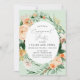 Schöne Einladungen mit einem eleganten, modernen, neutralen, pastellfarbenen botanischen Blumenrahmen in sanften Erdtönen aus Pfirsich, Orange, sanftem Weiß, Gelb und vielen Grün-Tönen von Salbei Grün bis hell und tiefer Grüntöne. Ihre personalisierten Details werden in einem erhöhten typografischen Layout dargestellt, das den Ehrengast in die Vorderseite und in die Mitte bringt.