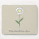 Ein hellbraunes Mauspad mit einer botanischen, dunkelfarbigen Blume-Abbildung in Pastellfarben (Leucanthemum vulgare) und ein individualisierbarer Text ganz unten: eine nette Geschenkidee für ein Mädchen, das Blume Liebe hat. Daisy ist die Blume von April und symbolische Bedeutungen von Güte, Reinheit, Unschuld, Freude und Fröhlichkeit.