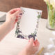 Eine Medaille aus Blüten und Blättern, die aus einer Sammlung von Wildblumen in lila Blues, weiches Rosa und Wiesengrün entstanden ist. Für besondere Hochzeitseinladungen mit einer besonders eleganten Touch. Die durchsichtige Abdeckung lässt die Haupteinladung bzw. das Foto unter sich glänzen und fügt gleichzeitig einen Rahmen aus Wiesenblüten hinzu. Ideal für Vintage, blumengeschmückte und botanische Garteneinladungen, ideal für Frühlings- und Sommerveranstaltungen.