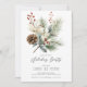 Diese elegante Weihnachtsfeier lädt mit einem wunderschönen Kiefernzweig, weißen Blume, heiligen Beeren und einem Set auf weißem Hintergrund zum Verweilen ein. Die Einladung ist ideal, um Ihre Freunde und Familie zu einer festlichen Ansammlung einzuladen. Das Gesamtdesign ist festlich und raffiniert, und die Einladung wird Ihre Gäste begeistern.