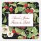 Botanische Himbeeren auf schwarzem Hintergrund Quadratischer Aufkleber
