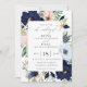 Wasserfarbene Blume und Blätter in trendigen Marinetönen, rot, staubblau und taupe mit Seestern- und Muschelexzenten, elegante Hochzeitseinladung. Karteneigenschaften, weiße und navy blaue Aquarellabdeckung.