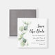 Niedliche Botanische Aquarellfarbe Eukalyptus Wedding rettet den Dattelmagneten, der für Ihre Gäste einen perfekten Sake bildet und jahrelang gepflegt wird. Ersetzen Sie die Namen, Ankündigung, Datum und Veranstaltungsort einfach, um eine Ankündigung Datum freihalten zu erstellen