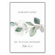 Ein wunderschön ätherisches Licht und ein luftiges botanisches Aquarell-Design mit Zweigen von Wäldern. Die Vorlage ist so eingerichtet, dass sie mit dem Namen und der Tischnummer des Gastes auf der Vorderseite und den Namen der Braut und des Bräutigams auf der Rückseite personalisiert wird. Die Karte druckt flach und lässt sich leicht zu einer stehenden Platzkarte zusammenlegen. Erstellen Sie für jeden Gast eine Karte und fügen Sie diese zum Warenkorb hinzu.