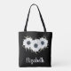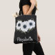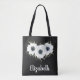 Elegante Aquarellfarben von schwarz-weiß anemonischen Blume und Blätter mit Ihrem Namen in jedem farbigen Schriftart - wir zeigen grün in schicken Schriften (ändern Sie den Schriftart auch!) auf der Vorderseite dieses Tote-Taschen. Großartiges Geschenk für Ihr Brautparty, Brautmutter, Bräutigam, für sich selbst oder für den besten Freund. Geben Sie, wie es ist oder füllen Sie mit vollem Zeug.