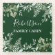 Familienname Cabin Wasserfarbe Botanischer Greenery Glass Untersetzer umfasst Efeu, Farn und Salbei Blätter. Waldgrüner Hintergrund.