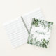 Das Botanische Grün-Notebook bietet Efeu-, Farn- und Salbei-Blätter. Ihr Name in einem stilvollen Skript.