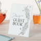 Stilvolle Frühlingsblütenkunst unterschreiben Sie bitte unser Gästebuchschild. Einfache Linienkunst mit Frühlingsblüten, Tendrillen und Schmetterlingen entlang der Seite. Ein einfaches monoton schwarz-weiß Design, um mit Ihren Worten zu personalisieren, wenn erforderlich. Passende Zeichen und andere Hochzeitsartikel und Farboptionen sind verfügbar und können auf Anfrage erstellt werden. © Original Hand zeichn und Design von Sarah Trett für www.mylittleedenweddings.com auf Zazzle.