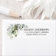 Das moderne elegante botanische Grün-Rücksendesiegel beinhaltet Eukalyptus-Blätter, grünes botanisches Blattwerk, staubblaue Blätter und andere wunderschöne botanische Pflanzen.