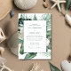 Set den Ton für Ihre traumhafte tropische Hochzeit mit dieser botanischen Tropischen Hochzeitsfeier mit einem üppig dunkelgrünen tropischen Blattdesign, das eine Touch von natürlicher Eleganz und exotischem Charme zu Ihrem besonderen Tag bringt. Die kühnen botanischen Elemente, kombiniert mit raffinierten Drehbüchern und Serifen-Schriftart, schaffen eine zeitlose, moderne Ästhetik, perfekt für Paare, die die Einfachheit mit einer tropischen Drehung verfeinert haben. Ideal für Hochzeiten in Urlaubsort, Strandfeiern, tropische Gartenfeiern und Inselaufführungen, besticht diese Einladung durch das Wesen einer entspannten und stilvollen Hochzeit. Erwecken Sie einen atemberaubenden ersten Eindruck mit dieser botanischen Tropischen Hochzeitsfeier, die die Bühne für eine Hochzeit voller Liebe, Schönheit und Inseleleganz bietet.