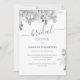 Eine schlichte Brautparty-Einladung mit Blumenblumen, botanischem, modernem minimalistischem, staubblauem Rosengarten-Bouquet, eleganten Aquarellblau-Silber-Blätter, Salbei-Grün-Design, modernem Kalligraphie-Script-Schriftart, weißem Typografie-Brautparty, Herbst-Sommerevent, trendigem romantischen Stil, bläulich-grau-silbernen Blume-Design. Artwork wird von Laura Lacina handgezeichnet,