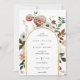 Elegant erdigen Herbst botanische Blüte, Hochzeit Einladung. Bogenrahmen mit goldenem Akzent und Koordination der Terracotta orange Farbunterlage. Die Einladung bietet schicke Typografie Design Stil Mix aus Kalligraphie und fett-Typ.