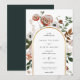 Elegant erdigen Herbst botanische Blüte, Hochzeit Einladung. Bogenrahmen mit goldenem Akzent und koordinierender smaragdgrüner Farbunterlage. Die Einladung bietet schicke Typografie Design Stil Mix aus Kalligraphie und fett-Typ.