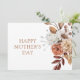 Eine üppige Wasserfarbe rustikale boho Stil florale botanische Muttertagskarte in verbrannten sienna, creme und braun erdig warmen Farben.