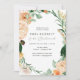 Schöne Brautmädchen laden zum Brunch ein, mit einem eleganten, modernen, neutralen, pastellfarbenen, botanischen Blumenrahmen in sanften Erdtönen aus Pfirsich, Orange, sanftem Blau, Gelb und vielen Grüntönen, von Salbei-Grün bis hin zu hellen und tiefer liegenden Grüntönen. Ihre personalisierten Details werden in einem erhöhten typografischen Layout dargestellt, das den Ehrengast in die Vorderseite und in die Mitte bringt.