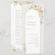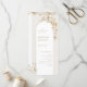 Diese eleganten Hochzeitsprogramme sind mit goldenen botanischen Blumenbildern aus dem Imitat ausgestattet und bilden einen Rahmen für eine zarte Goldlinie in Bogenform. Ihre Veranstaltungsdetails erscheinen in romantischen Skripten und einem ausgeklügelten Serif-Schriftart. Ideal für romantische Gartenhochzeiten und moderne Hochzeiten. Sehen Sie sich alle passenden Stücke in der Sammlung an.