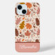Genießen Sie den Herbst mit diesem charmanten Design mit einem Muster botanischer Herbstlaube und Blumen. Die warmen Farbtöne Orange, Braun und Beige schaffen ein gemütliches und saisonales Ambiente, das sich perfekt für Herbstfans eignet. Das Script-Name-Element fügt eine personalisierte und elegante Touch hinzu, die dieses Design sowohl stilvoll als auch einzigartig macht. Ideal für diejenigen, die naturlich inspirierte und weibliche Accessoires Liebe.