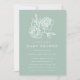 Schick und stilvoll eingerichtete Babydusche mit Blumenstrauß und Trellis-Muster auf der Rückseite der Einladung. Die Minzgrün-Babydusche wird durch den Namen der künftigen Mutter und die Duschdetails für ein Design, das die Gäste bestimmt beeindrucken wird, individuell gestaltet.