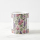 Diese Tasse zeigt das gleiche schöne, komplizierte Design wie Ihre Heimkollektion mit einem dezenten Muster aus rosa und lavendelfarbenen violetten Blumen, grünen Blättern und charmanten Schmetterlingen.