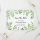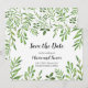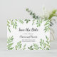 Elegante Naturhochzeit speichern Sie die Dattelkarte mit grünen Aquarellfarben-Blätter. Ideal für Frühjahrshochzeiten und andere moderne botanische Gartentheater-Events.