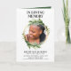 Im Loving Memory Programm, das auf der Vorderseite ein Foto Ihrer Lieben, ihren Namen, Termine, die Gedenkstätte, das Datum der Veranstaltung und das ganze Programm ist schön gestaltet mit botanischem Grün. Auf der Innenseite ist ein Nachruf und die Reihenfolge des Dienstes, und auf der Rückseite ein Dankeschön Notiz und der Ort des weck.
