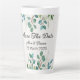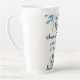 Elegant Save the Date Latte Tasse mit schönen grünen Blätter.