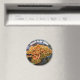 Für den Pilzjäger! Dekorativer, runder Magnet für Zuhause oder Büro, der das Foto eines Pilzes aus dem Huhn des Waldes, einer essbaren Pilzart, zeigt. Wählen Sie Ihre Magnetgröße aus.