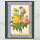 Antike Reproduktion von rosa und gelb rosa Blume botanische Kunstwerke des berühmten Künstlers Pierre Redoute mit blauen Schmetterlingen.