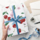 Botanischer Roter Kirschen Grüne & Blüten Geschenkpapier