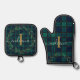 Botanischer Wreath Tartan kariertes Script Monogra Ofenhandschuh & Topflappen-Set
