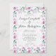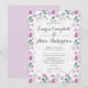 Dieses mädchenhafte Design zeichnet sich durch hübsche Aquarellblumen, Peonies und Blätter in Lila und Pfefferchen in und über Muster aus. Dieses Design hat auch eine subtile transparente Overlay mit elegantem Text. Einfach personalisieren, um Ihre eigene, einzigartige Hochzeitseinladung zu kreieren.