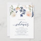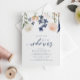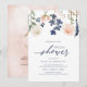 Bridal Duwer Einladungen mit Peach und Blue Florals (Registry & Wedding Website on Back): Diese einzigartigen Brautduscheinladungen sind mit staubigen pfirsich und dunkelblauen botanischen Blätter und Blume ganz oben ausgestattet. Auf der Rückseite finden Sie einen passenden Kranz, einen Aquarellhintergrund, die Registrierungsinformationen des Paares und die Hochzeitswebsite. Ändern Sie Ihren Text, um ihn zu Ihrem eigenen zu machen. Sie können auch Ihre Textfarbe und Hintergrundfarbe ändern!