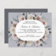 KOSTENLOSE EINLADUNG *** AUF DEM ERSTEN, LIGHTER-GEWICHTETEN PAPIER *** Dieses Design zeichnet sich durch einen eleganten Blumenkranz aus Rose, Blätter und Kiefernnadeln in Aquarellfarben aus staubiger Rose, Elfenbein, Creme und Grautönen aus. Ihre Hochzeitsdetails werden in einer eleganten Kombination aus kursiven Weiß und Hauptstadt über einem Buchstaben dargestellt ovaler Rahmen (horizontal). Ideal für feierliche Feste oder für eine elegante Hochzeit mit romantischen Gothlebnissen. Karte rückwärts zu einem passenden dunkelgrau