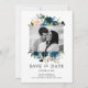 Botanisches Foto Navy Blue Blush Pink Rose Save The Date